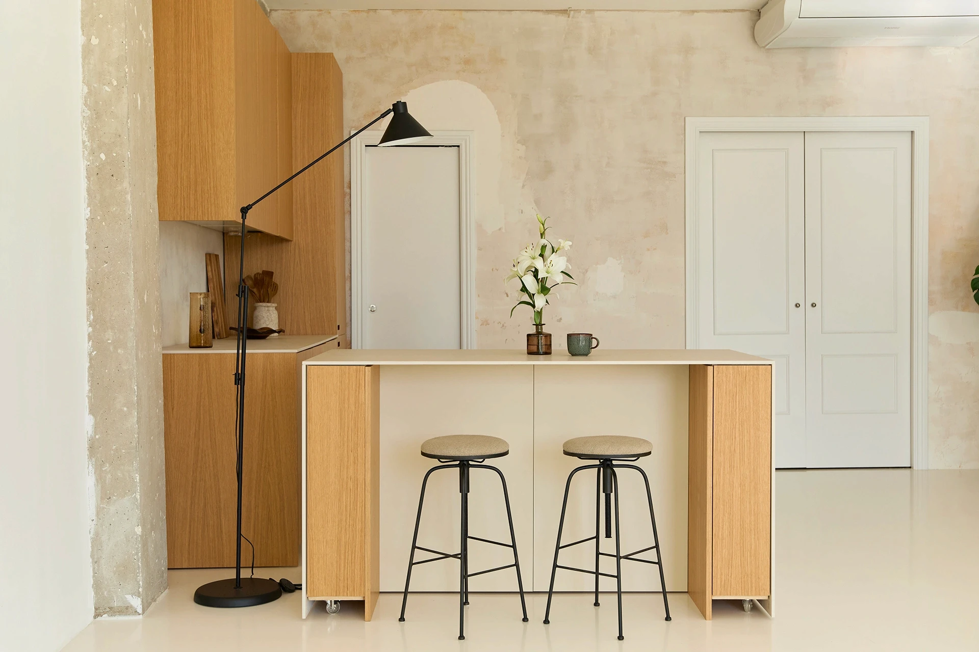 Buscas un espacio privado de 70m2 para que realizar tus proyectos sintiéndote como en casa. Orientado al sur-este, en el estudio disfrutarás de una magnífica luz natural todo el día gracias a sus grandes ventanales (de 3 x 6 metros).
